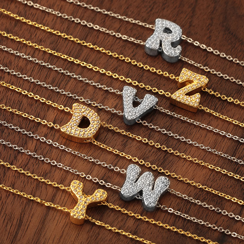 New hot cross-border copper inlaid zirconium pendant 26 English letters temperament pendant DIY wholesale factory direct sales