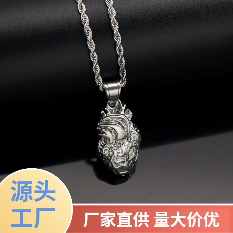 Cross-border hot selling personalized creative human organ pendant hip hop fashion trend stainless steel heart pendant