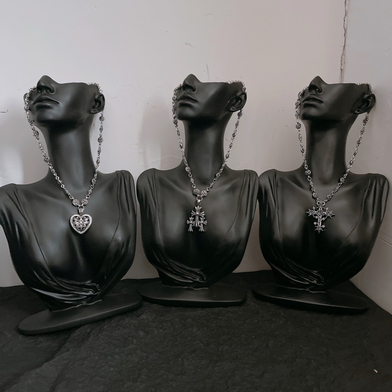Hip-Hop Unisex Cross Heart 3D Pendant Necklace for Women with Unique Design Clavicle Chain Trendy Choker