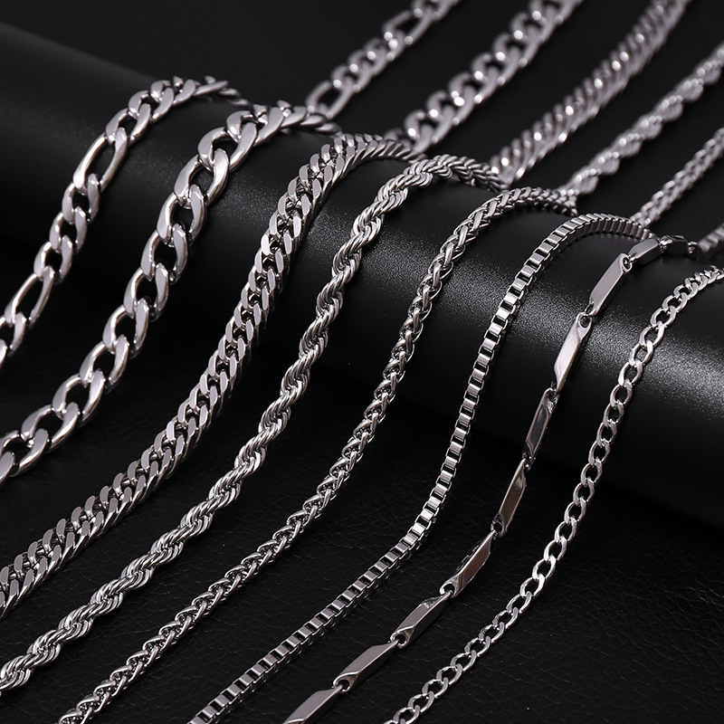 Temu Aliexpress Popular Hot Style 4mm Round Box Chain Necklace Hip-Hop Men's and Women's Punk Silver Jewelry Spot Wholesale