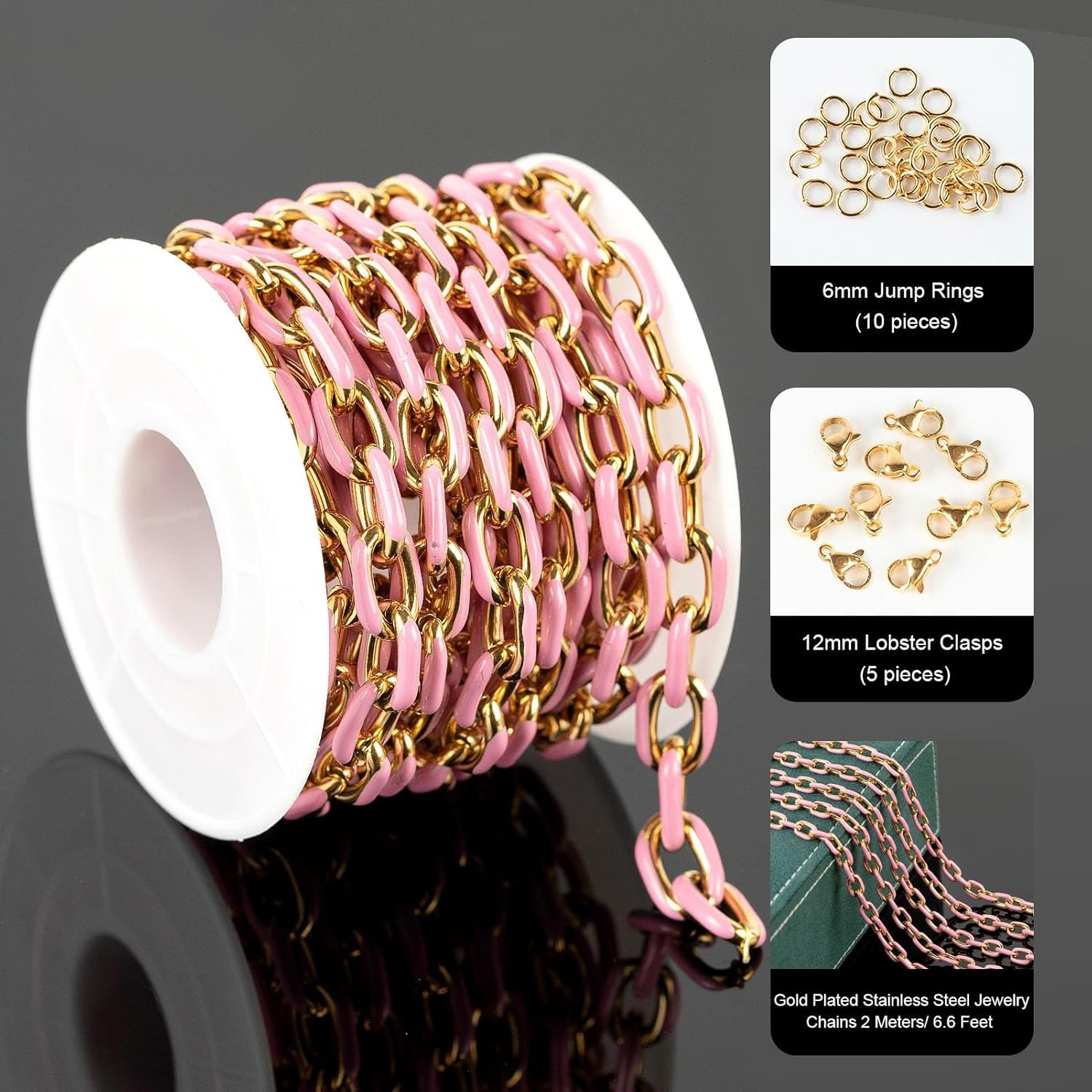 Cross-Border Titanium Steel Enamel Oil Dripping Chain DIY Stainless Steel Large Thick Chain Hip-Hop Colorful Handmade Chain Bracelet Necklace Accessories