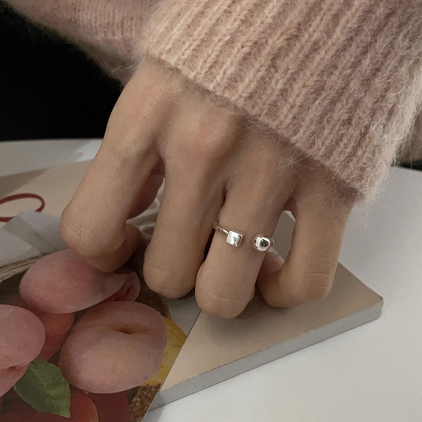 Korean-style Korean-style geometric square ring Women's retro fashion square ball open ring hip hop index finger ring fashion