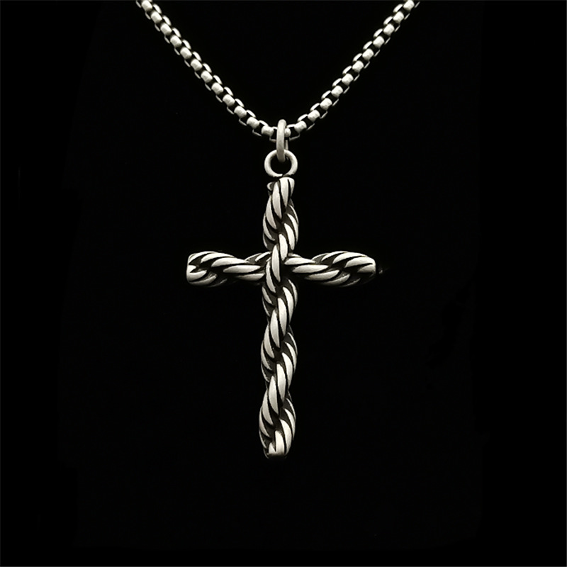 Cross-border e-commerce hot-selling simple hip-hop twist twist cross men's Casting stainless steel pendant necklace