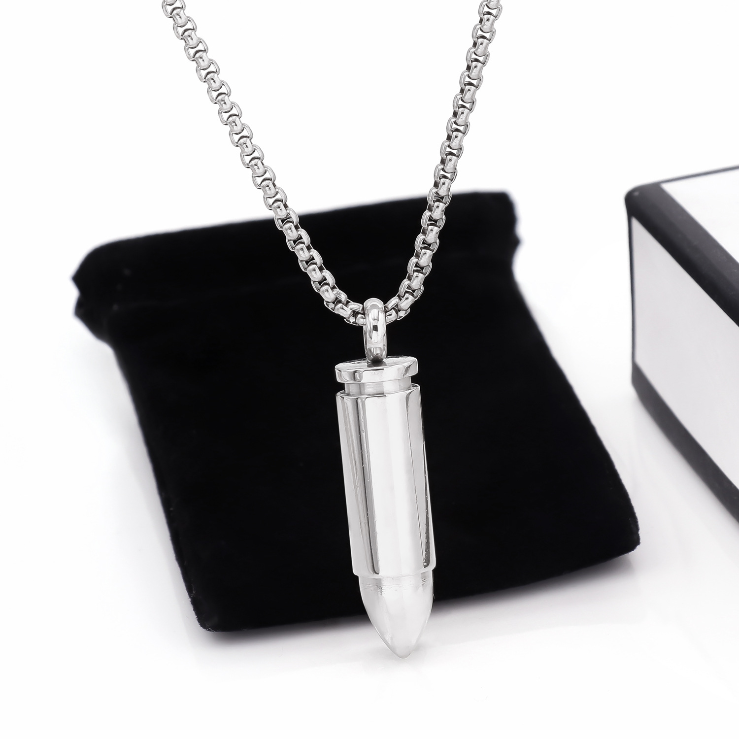 Cross-border European and American titanium steel bullet necklace men and women hip-hop punk style cylindrical pendant necklace stainless steel jewelry