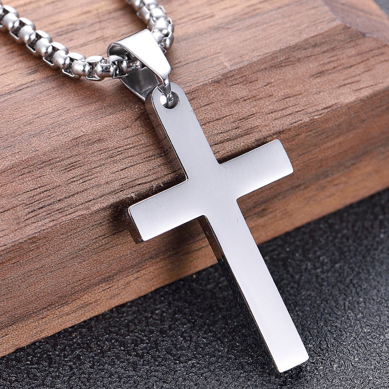 European and American Cross-border Explosions Tags Hip-hop Titanium Steel Men's Cross Necklace Korean Style Simple Glossy Cross Pendant