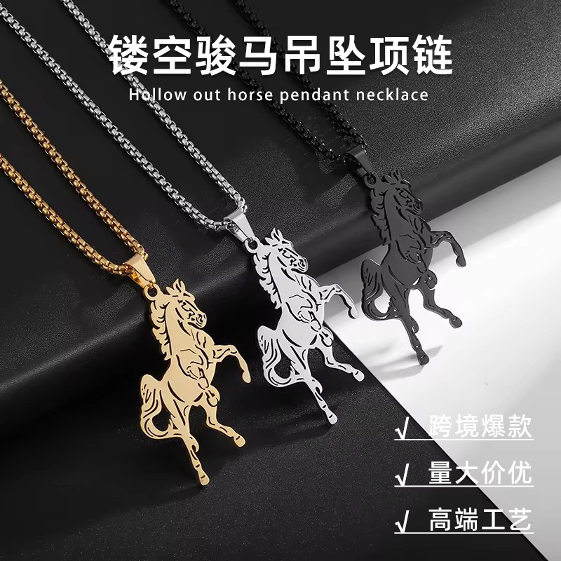 Cross-Border New Style Hollow Hip-Hop Animal Horse Zodiac Pendant Personalized Birthday Gift Men's and Women's Necklace Sweater Chain