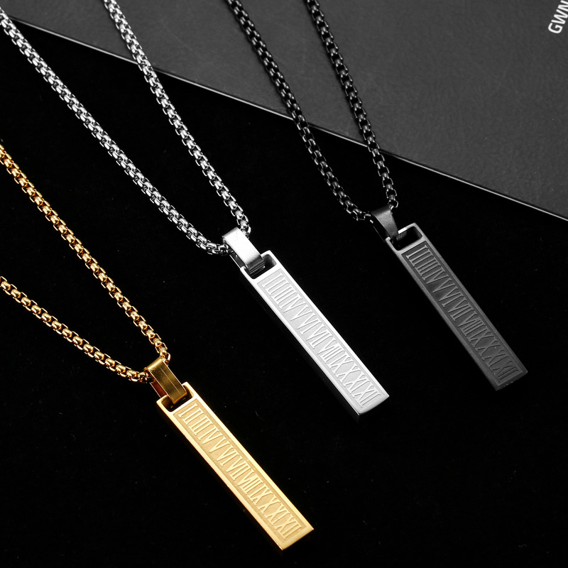 Foreign Trade Accessories New Product Stainless Steel Roman Retro Stereo Rectangular Pendant Sweater Chain Necklace Men's Niche Hip-Hop
