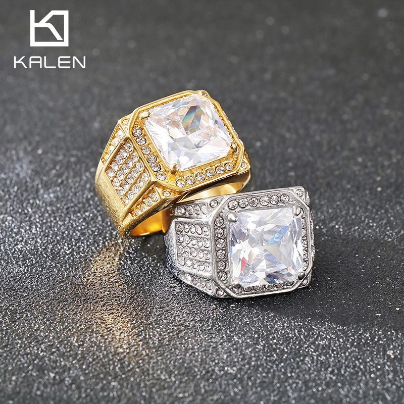 Creative Classic Diamond-Encrusted Titanium Steel Ring European and American Domineering Gold-Plated Zircon Wide Stainless Steel Men's Ring