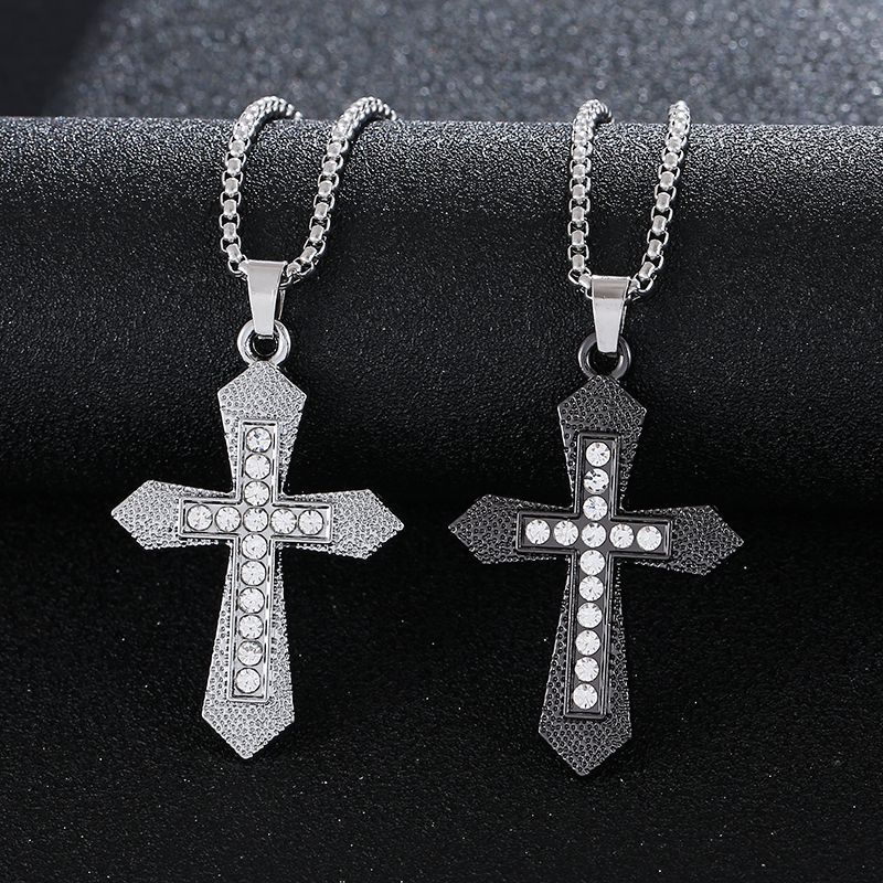 Foreign Trade Jewelry Cross-border European and American Hip Hop Diamond Cross Necklace Personality Trend Men's and Women's Long Woolen Chain