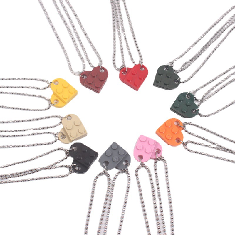 Men's and women's lovers necklace a pair of hip-hop European and American cross-border detachable love-shaped building block pendant wholesale friendship ornaments