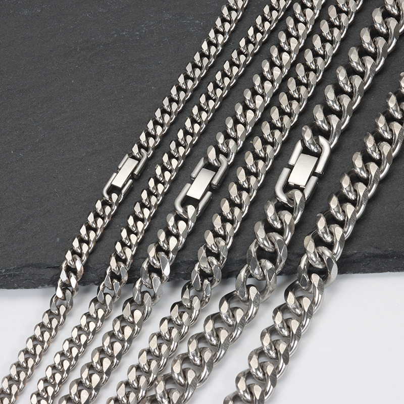 [Titanium steel color protection necklace] six-sided grinding Cuban chain men's and women's hip hop watch buckle jewelry buckle clavicle sweater chain