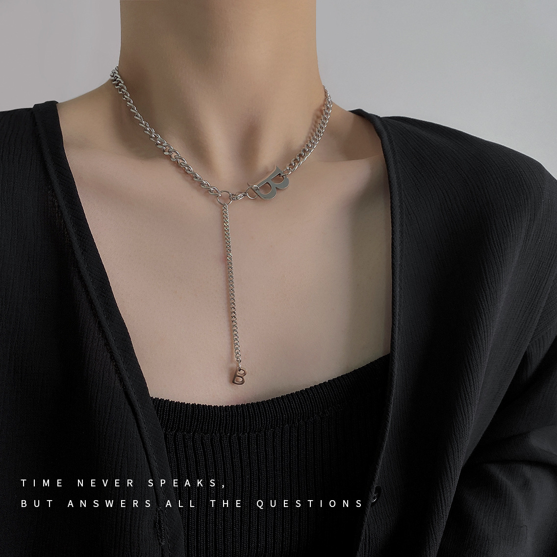 Titanium Steel B Letter Pendant Necklace Women's ins Hip-hop Trendy Light Luxury Niche Collarbone Chain Cool Internet Celebrity Sweet Cool Necklace Chain
