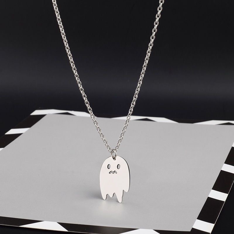 Cute Titanium Steel Simple Ghost Necklace Pendant Niche Design Hip-hop Street Sweatshirt Clavicle Chain Student Accessories
