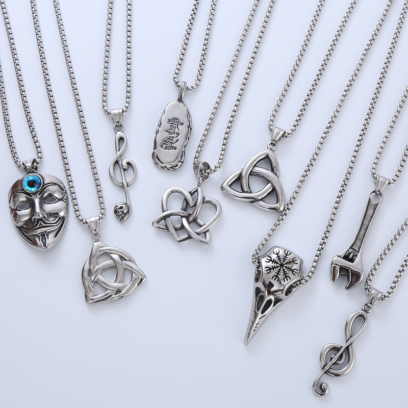 New European and American popular punk style creative all-match disco jumping personality men's necklace ins hip hop titanium steel jewelry wholesale
