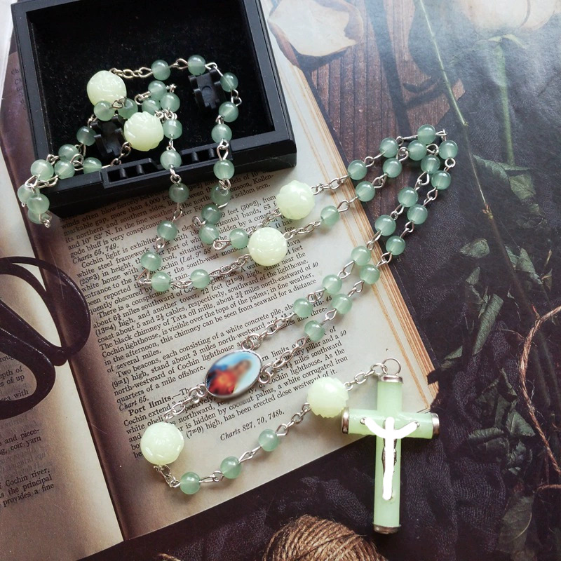 AliExpress jewelry pure hand beaded necklace men's and women's trendy hip hop pendant luminous niche clavicle chain necklace sweater chain