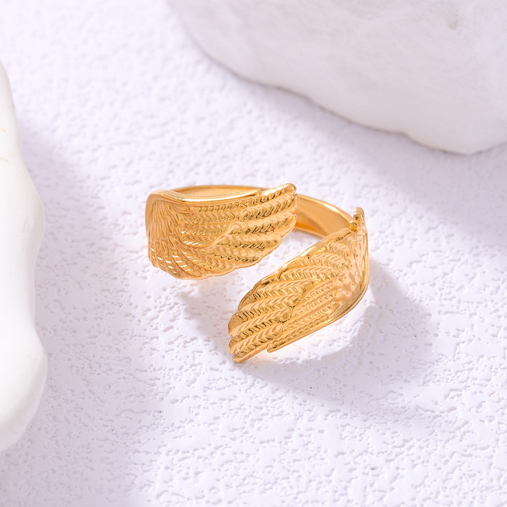 Europe and the United States cross-border creative angel wings titanium steel ring female opening personality trend hip-hop stainless steel ring wholesale