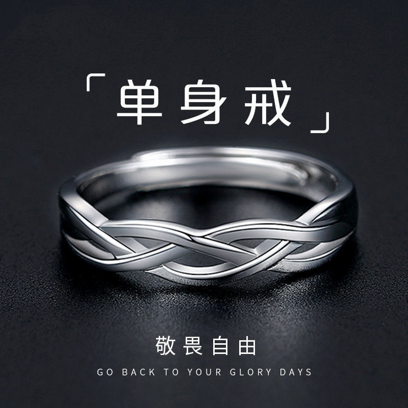 Green Silk Ring Men's Ins Niche Simple All-match Interwoven Single Ring Doctrine Hip-hop Tail Ring Open Ring