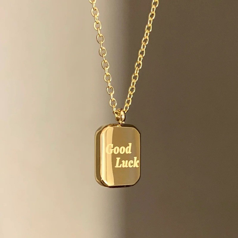 Simple Square Brand Pendant Letter Hip-Hop Necklace Women's Summer Cool Style Double Layer Stacked Wear Decorative Collarbone Chain Accessories for Men