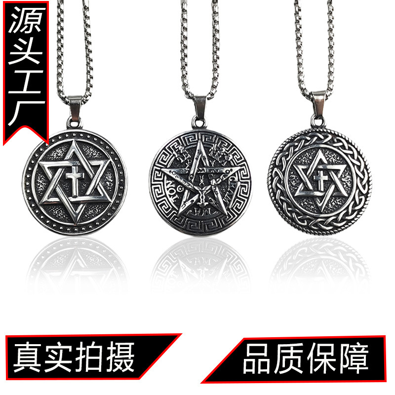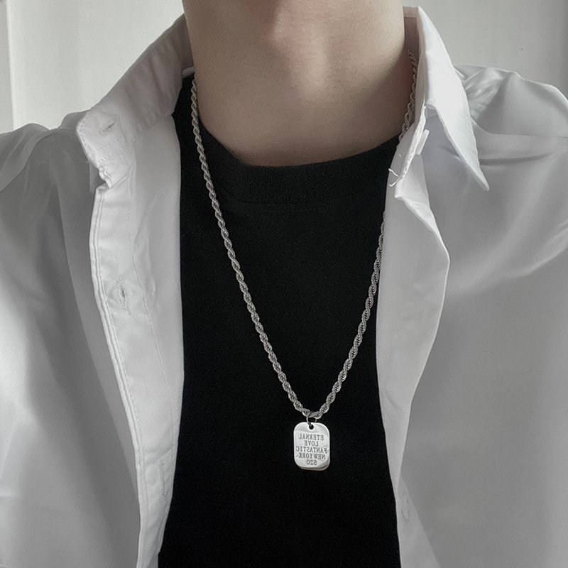 Hong Kong Style Niche Street Punk Trendy Brand Stacked Letter Square Circle Pendant Titanium Steel Hip-Hop Stylish Versatile Men and Women