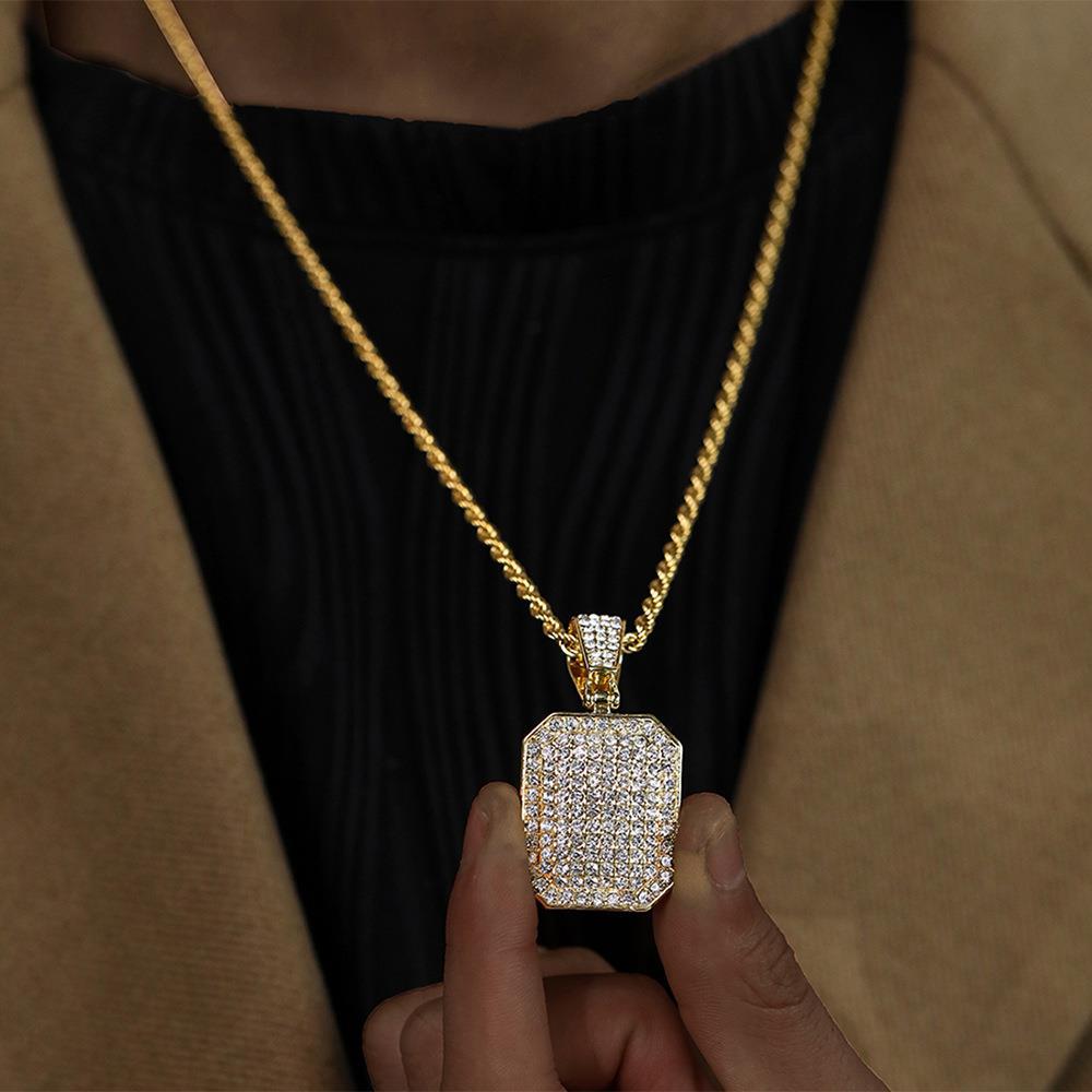 Hip hop personality trendy men's six-word mantra magic pestle necklace men's trendy TikTok retro Buddha style diamond pestle pendant men