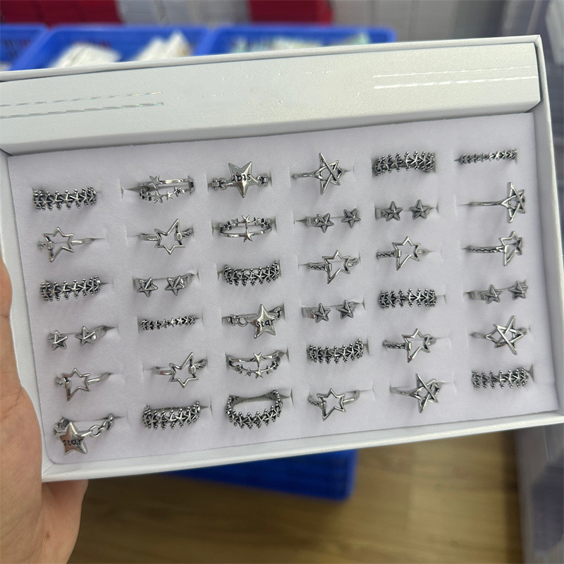 New Retro Men's Trendy Ring Hip-Hop Student Index Finger Opening Adjustable Boys' Ring Five-Pointed Star Ring Wholesale
