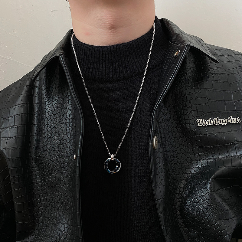 Trendy men's hip hop three ring titanium steel non-fading necklace women's simple exquisite niche summer personality Internet celebrity fashion brand pendant