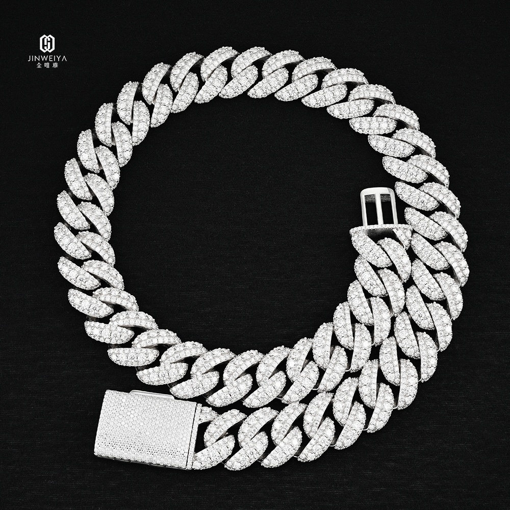 Europe and the United States cross-border 18mm raised flat hip-hop necklace new fashion men's necklace copper set zircon Cuban necklace