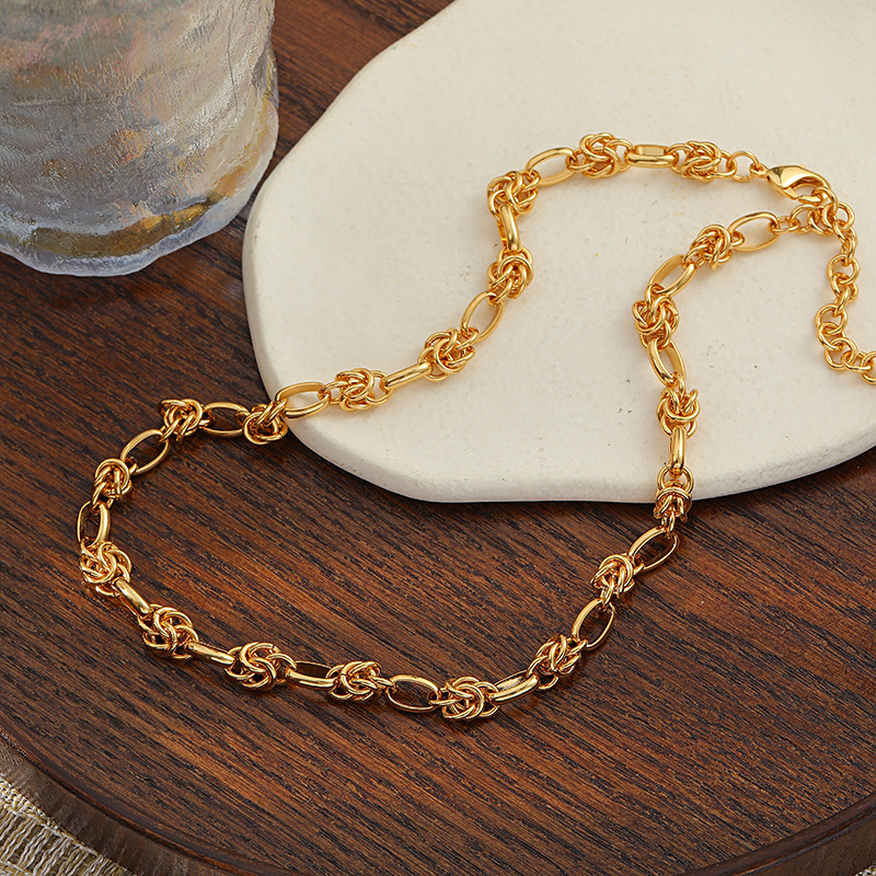 European and American Necklace Female Niche High-end Sense Personalized Hip Hop 18K Gold Knot Sweater Chain Fashion Atmospheric Clavicle Chain Tide