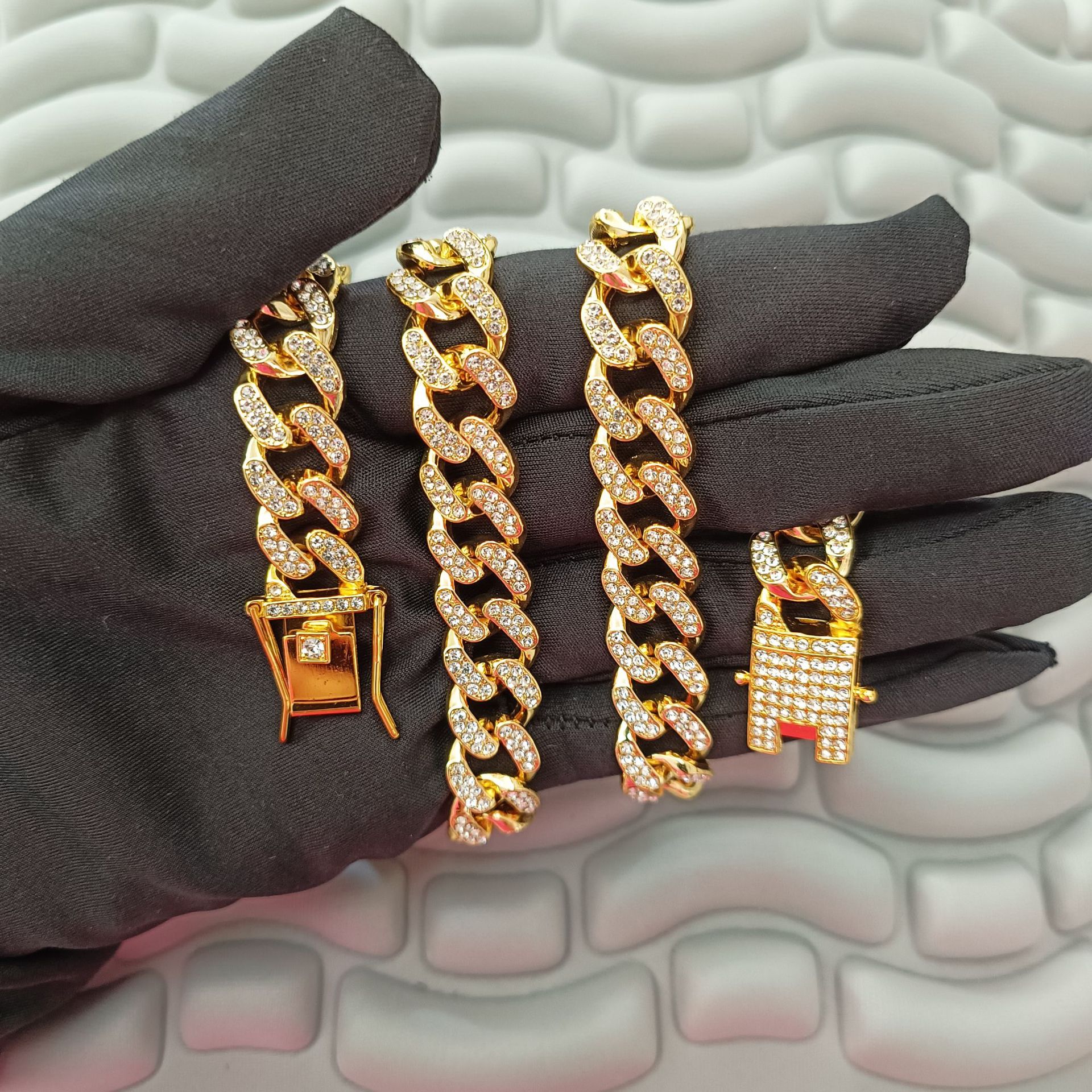 Cross-Border Popular Jewelry Hip-Hop Trendy 13mm Cuban Chain Diamond Bracelet for Men and Women Hiphop Gold-Plated Necklace