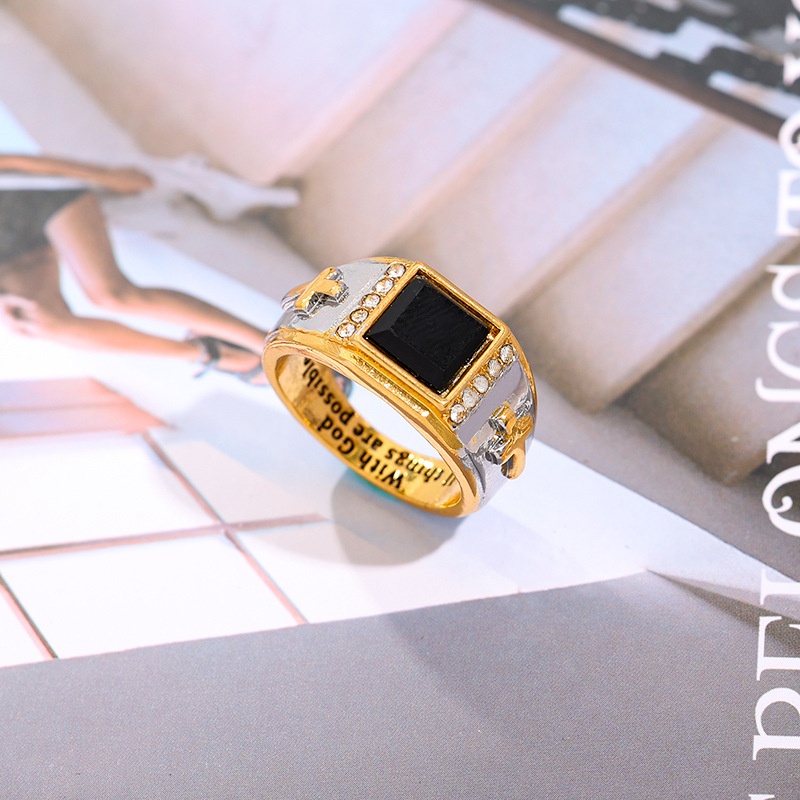 Faith Ring Men's Fashionable Personalized Open Ring Hip-Hop Trendy Men's Light Pasta Finger Ring Fashionable Simple Aperture Ring