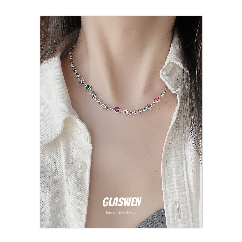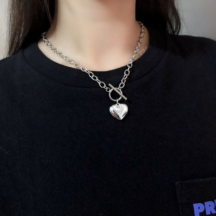 Creative Trendy Heart Pendant Necklace Versatile Titanium Steel Necklace Retro Hip-Hop Style Men's Sweater Chain European and American Hot Sale