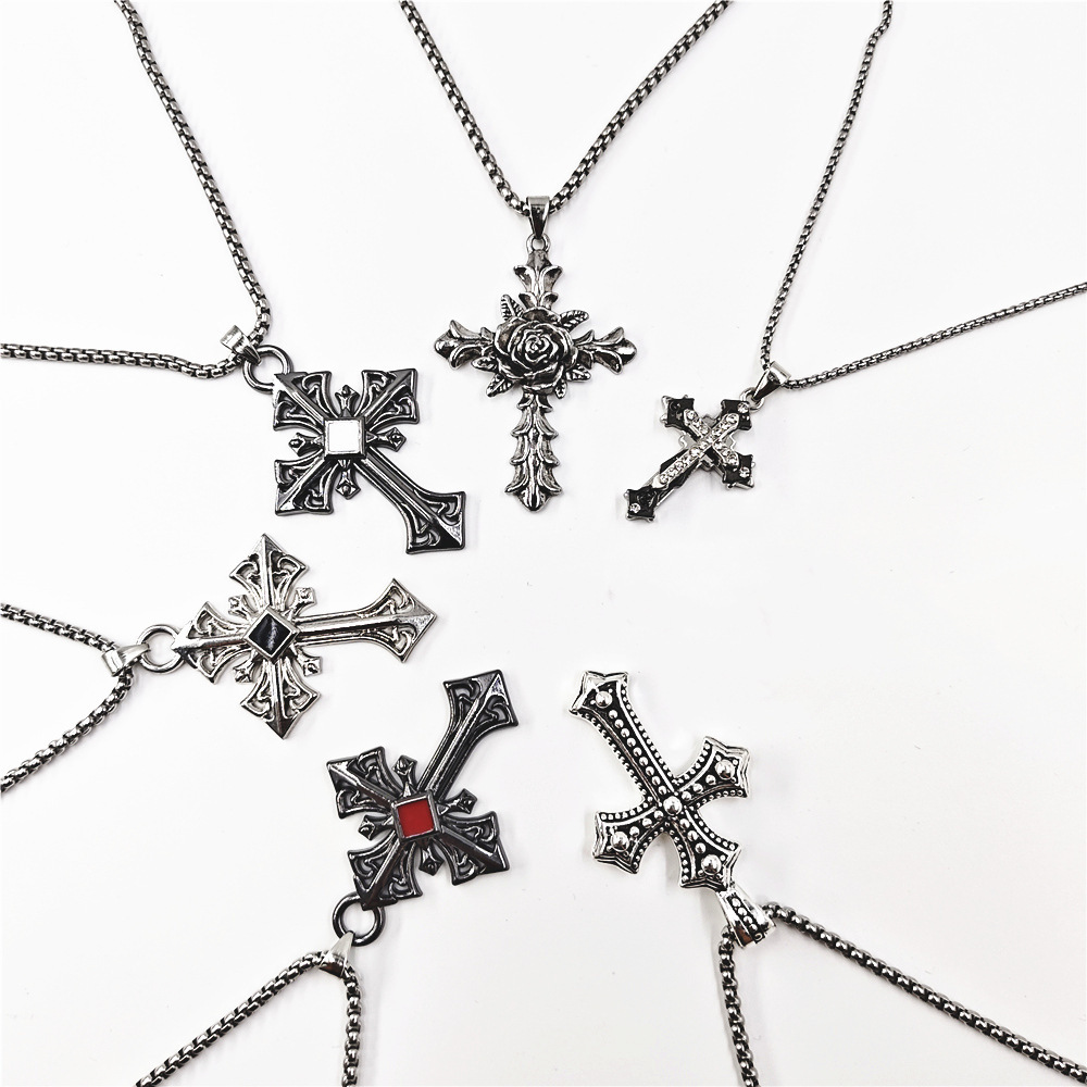 Retro cross pendant necklace hip-hop Joker cross sweater chain European and American cross-border personality necklace wholesale