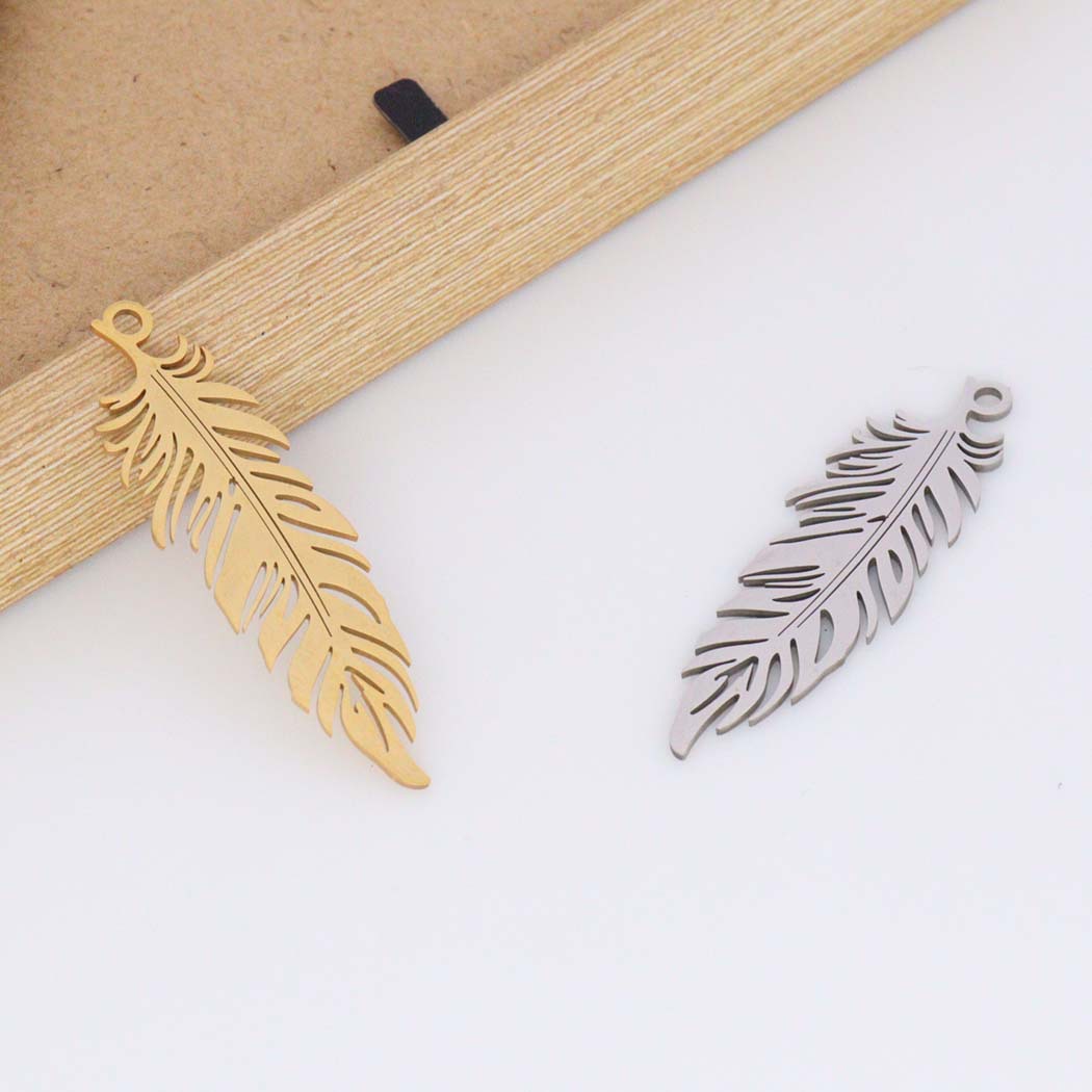 Stainless Steel DIY Feather Pendant Hip Hop Neutral Wind Necklace Earrings Jewelry