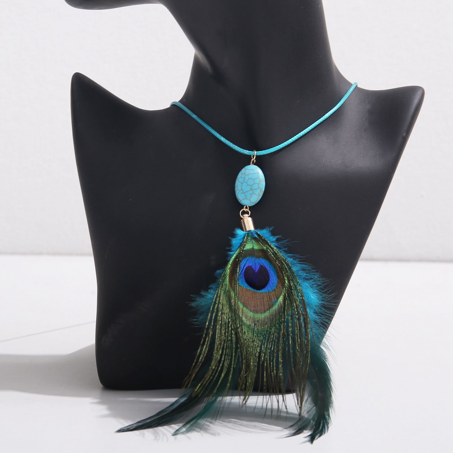 European and American Popular Bohemian Ethnic Style Indian Hippie Tassel Hair Accessories Peacock Feather Hair Accessories Feather Necklace