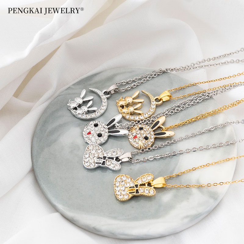 Diamond-encrusted rabbit necklace titanium steel non-fading jewelry women's all-match clavicle chain ins high-grade niche alloy pendant
