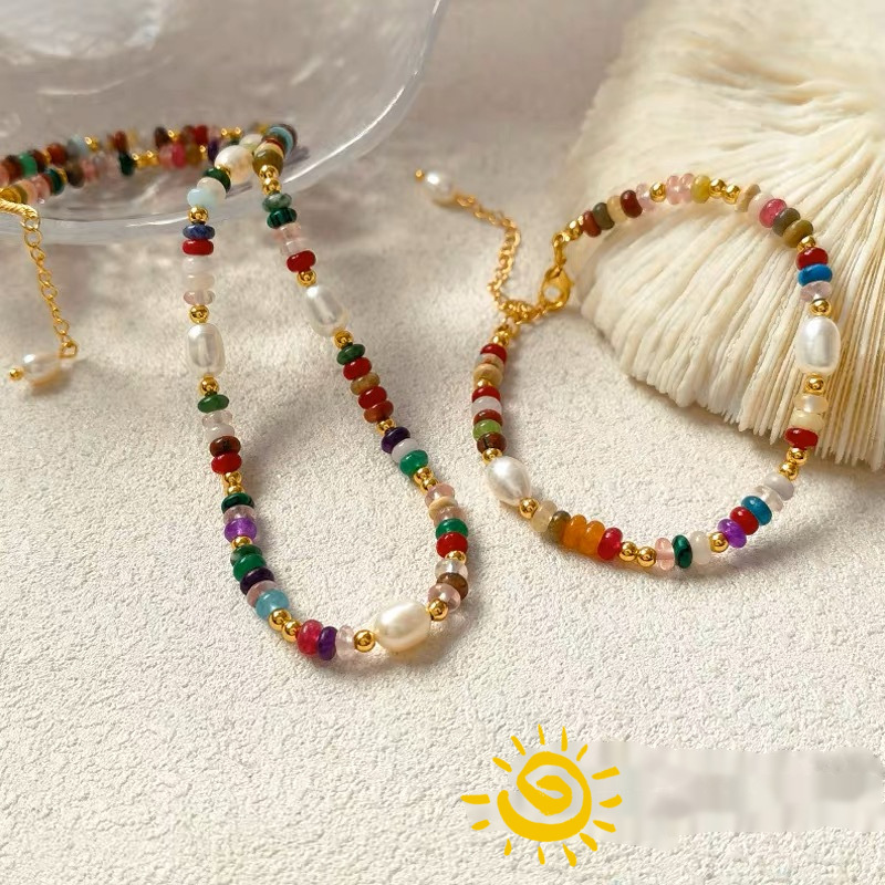 Explosive Colorful Natural Stone Pearl Mix and Match Necklace Girl's High-grade Non-fading Overlapping Accessories Niche Design