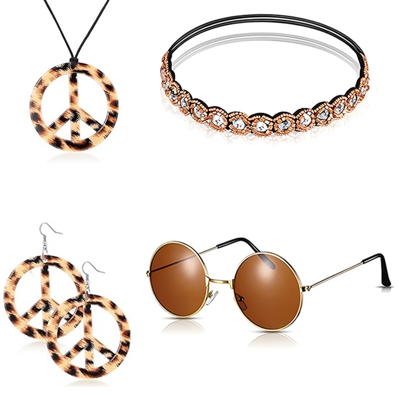 European and American Hippie Leopard Print Peace Symbol Earring and Necklace Set, Party Props, Party Decorations, Vintage Hippie Style