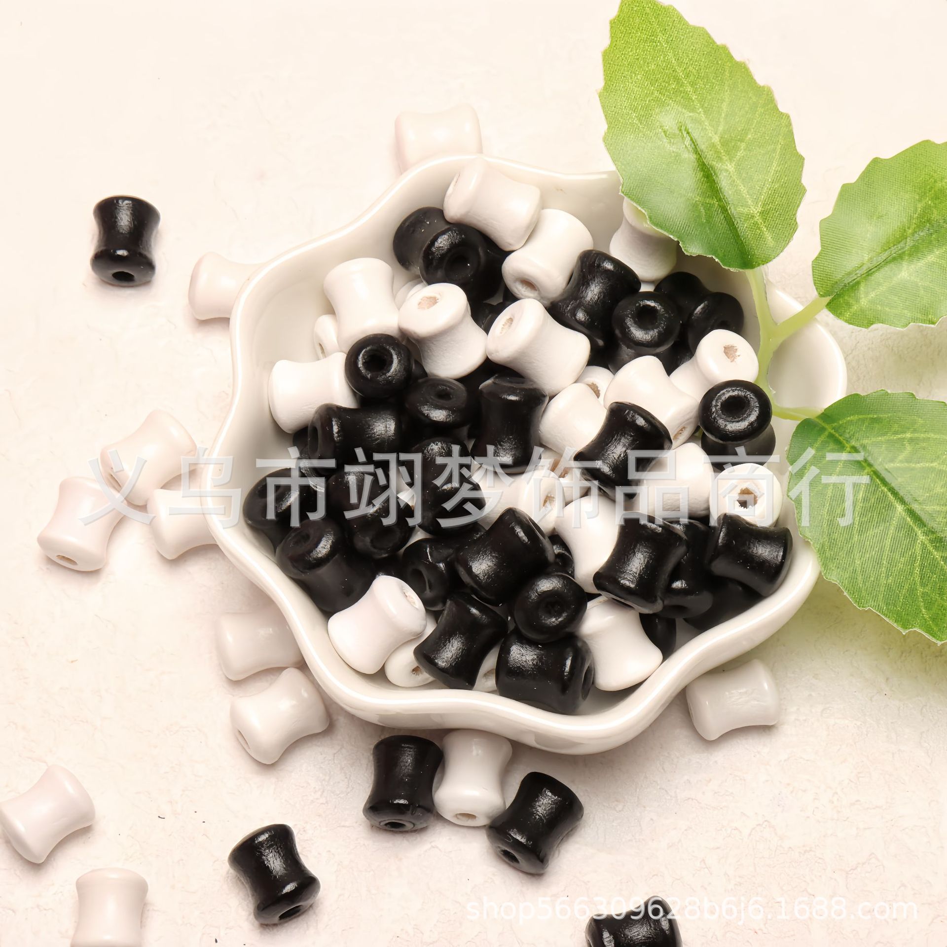 Pure Wood Bamboo Wood Beads Loose Beads Black and White Mixed DIY Rosary Bracelet Necklace Pendant Accessories Material