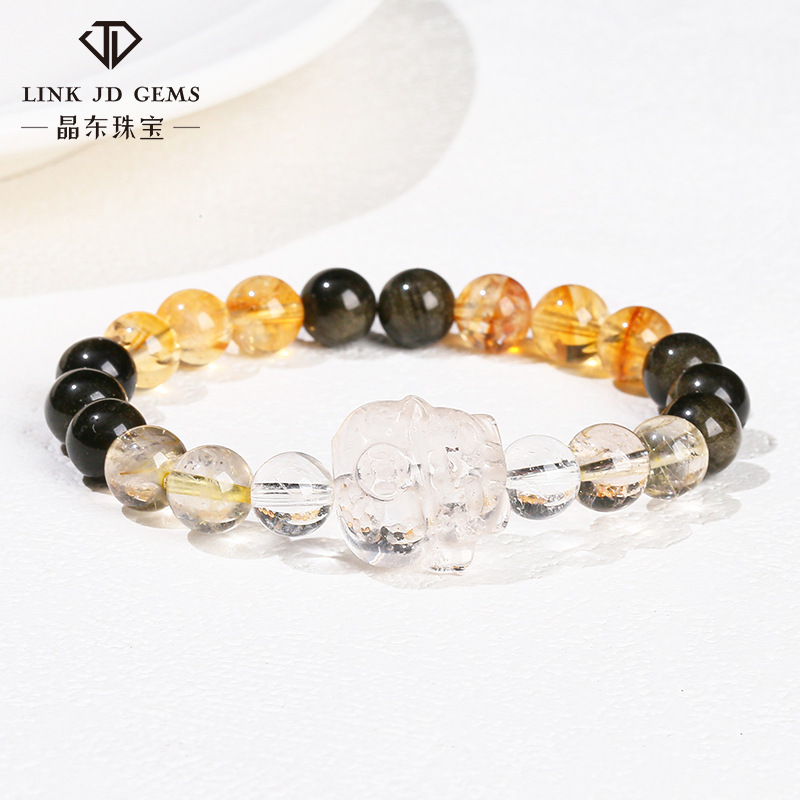 Jingdong Jewelry 5A Natural Gold Obsidian Huangta Crystal White Crystal Luckier Cat Bracelet Girls Simple Mix and Match Bracelet