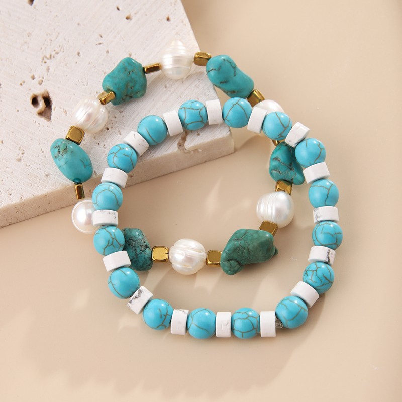 European and American retro turquoise Pearl mix and match handmade beaded bracelet women's national style fashion bracelet jewelry wholesale