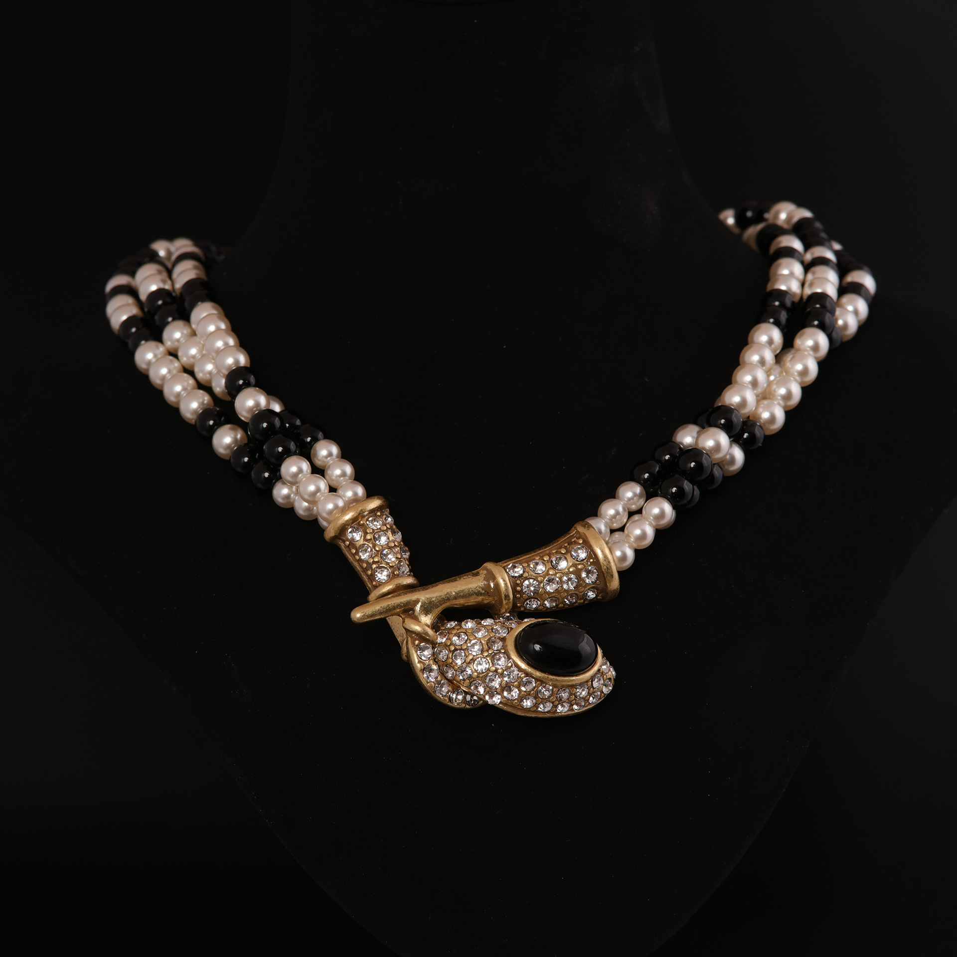 Middle ancient vintage copper alloy classic black and white mix and match retro port wind pearl necklace Qingdao factory wholesale