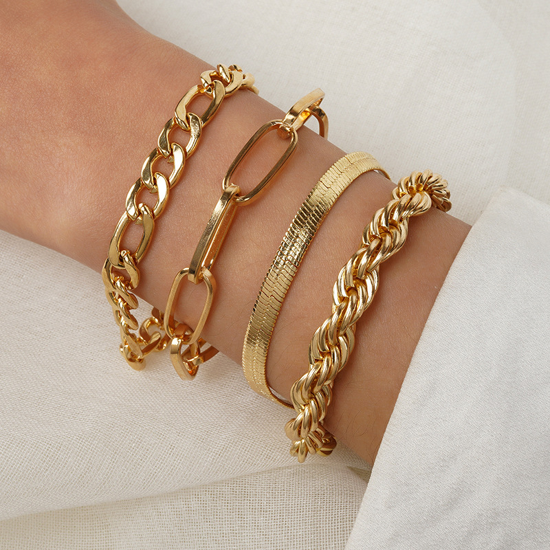 European and American Cross-border Jewelry Mix and Match Twist Chain Bracelet Simple Thread Exaggerated O-chain Set Bracelet
