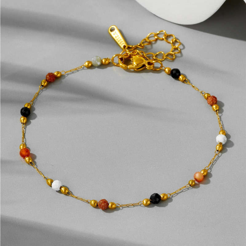Titanium Steel Mix Natural Stone Beaded Design Necklace Bracelet Jewelry suit European and American Ins Wind Stainless Steel Gold Plated Chain