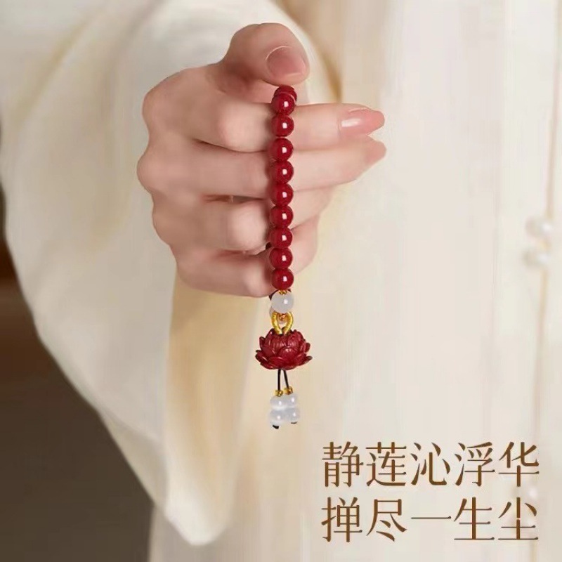 2025 New Chinese Cinnabar Lotus Cat's Eye Bracelet Meditation Elegant Elegant Bracelet Women's National Style Beaded Jewelry