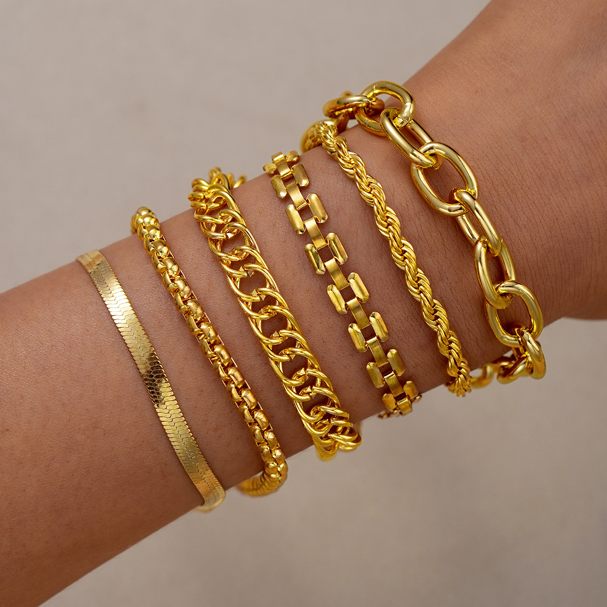 European and American Trendy Jewelry, Smooth Mixed Twist Chain Bracelets, Simple Threaded Exaggerated Hip-Hop Four-Piece Bracelet Set