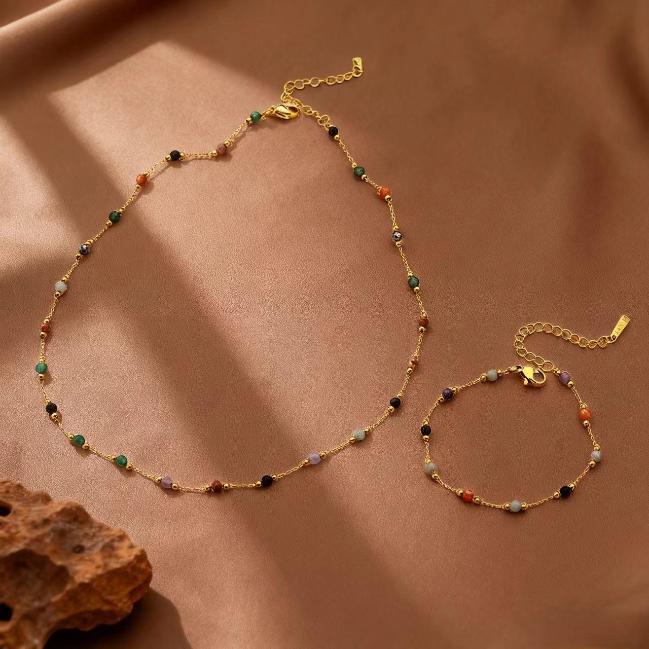 Cross-Border Mix and Match Colorful Natural Stone Design Necklace Titanium Steel 18K Gold Versatile Exquisite Elegant Dopamine Bracelet for Women