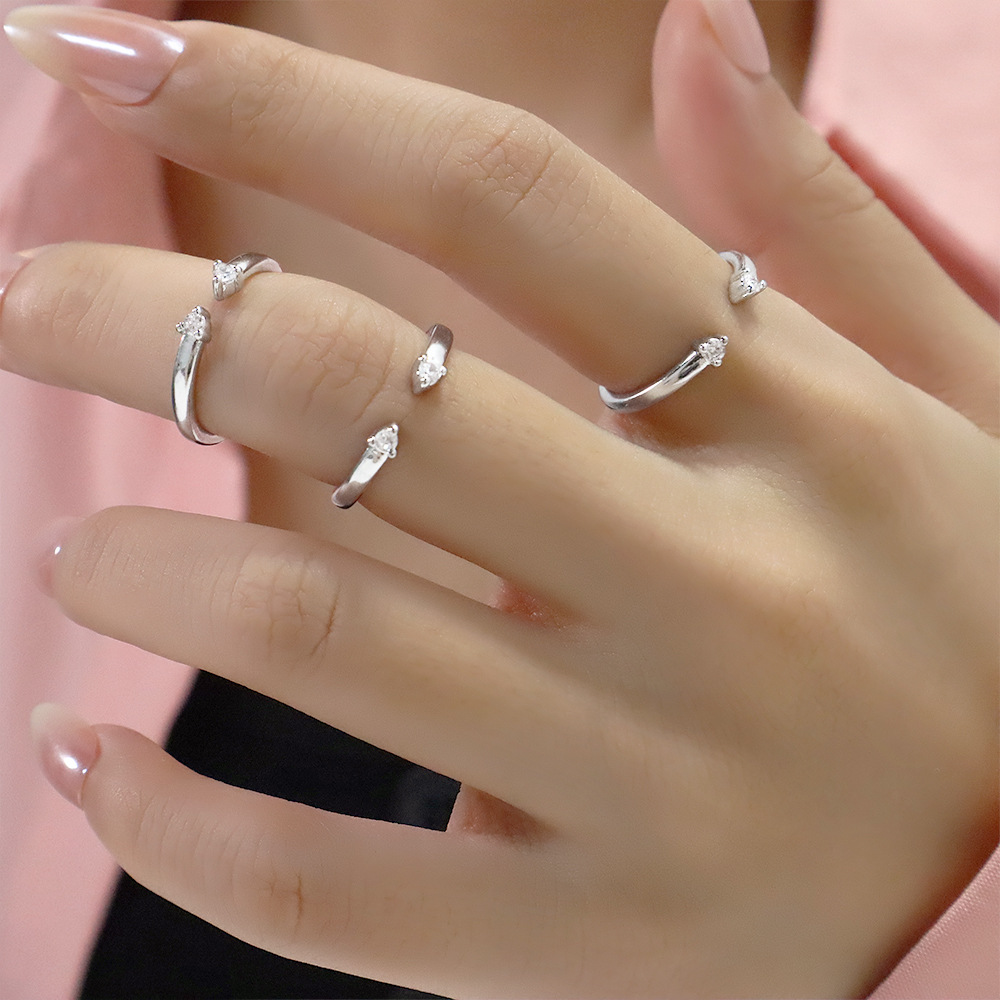 Diamond-Encrusted Index Finger Ring Ins Style Simple Women's Accessible Luxury Plain Ring Stacked with Mixed and Matched Small Round Diamond Open Ring Two Zircon Rings