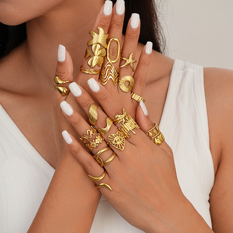 European and American Stainless Steel Geometric Open Ring Set Mix and Match Fashion Ring Hip-Hop Trend Ring Index Finger Ring Accessories