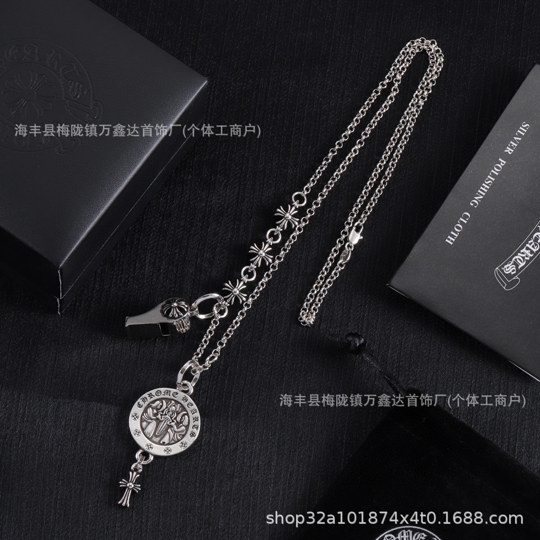Crowe's New Cross Necklace, Personalized Angel Pendant, Same Style for Men and Women, Splicing and Mixing and Matching Retro Whistle Set Chain