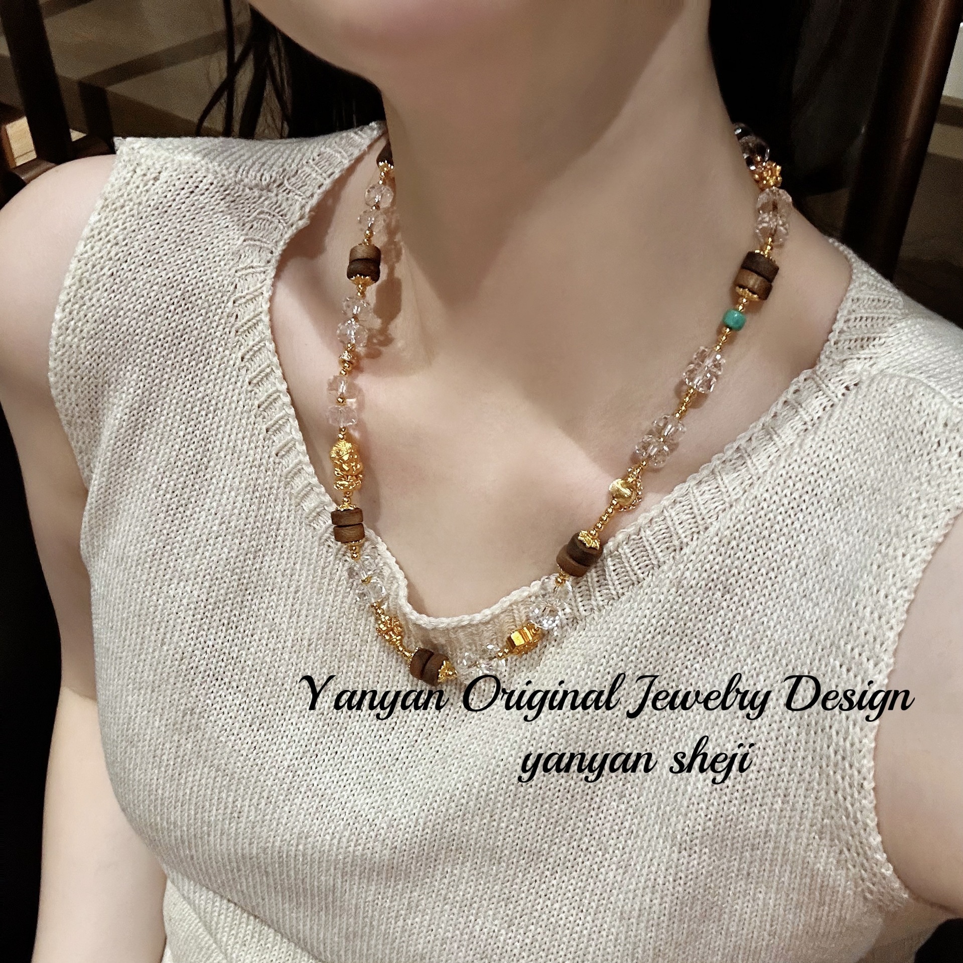 Chinese Style Fashion New Chinese Style Agarwood Mix and Match Design Necklace Natural Crystal Ice Transparent Multi-Circle Bracelet Necklace New Style